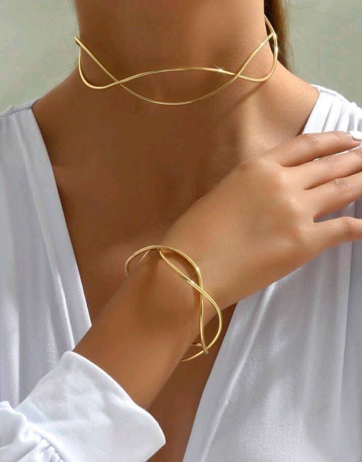 1 Piece Double Layer Cross Lines Choker Necklace, Gold and Silver, Adjustable Open Ends, Chic Women Accessory