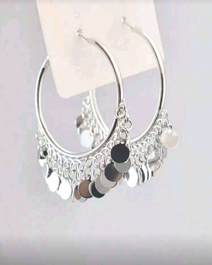 1pair Disc Charm Earrings Fashion Gemetric Round Pendant Large Hoop Earring For Women