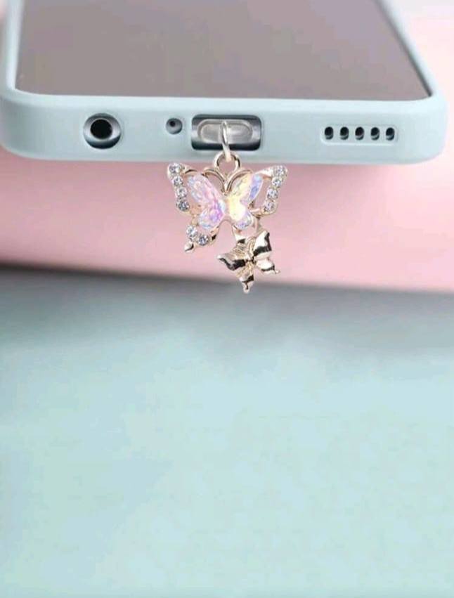 1pc Colorful Flash Diamond Butterfly Apple Mobile Phone Hanging Decoration Dust Plug Charging Port Rubber Plug