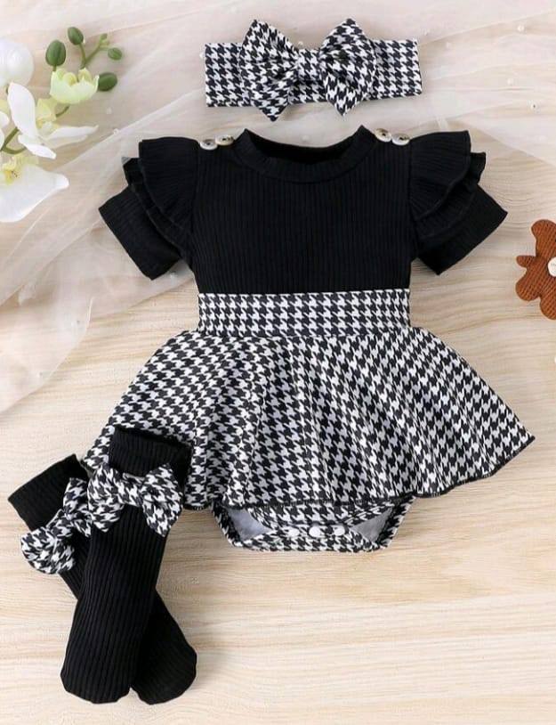 1pc Infant/Toddler Girls’ Cute Patchwork Long Sleeve Romper