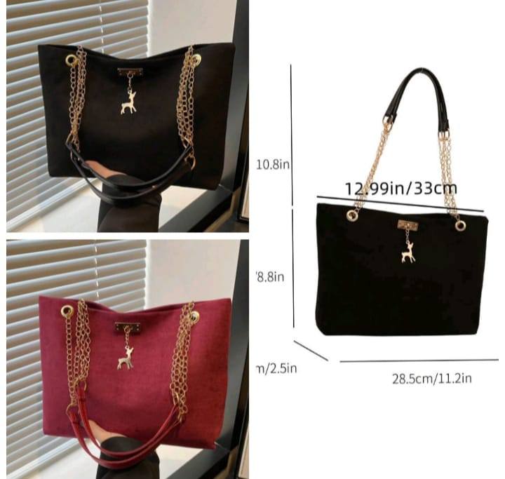 1pc Polyester Deer Decoration Large Capacity Zipper Closure Fashion Shoulder Tote Bag, Suitable For Women Daily Use