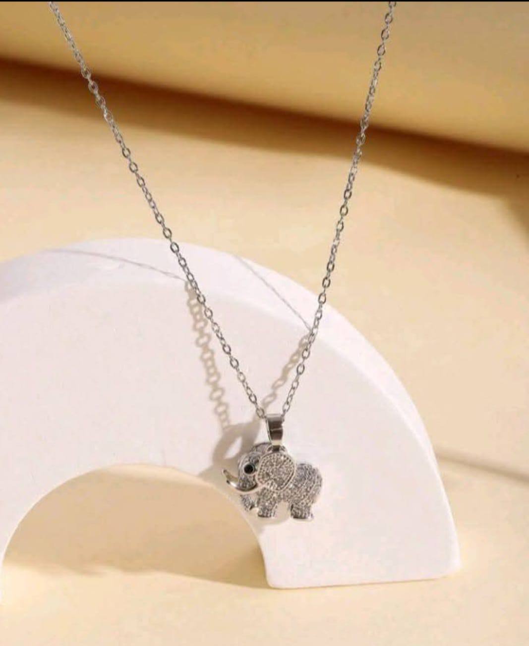 1pc Silver Alloy Cubic Zirconia Elephant Pendant Necklace