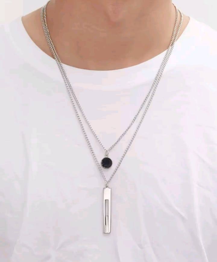 2 Pieces Men’s Geometric Round Pendant Necklace