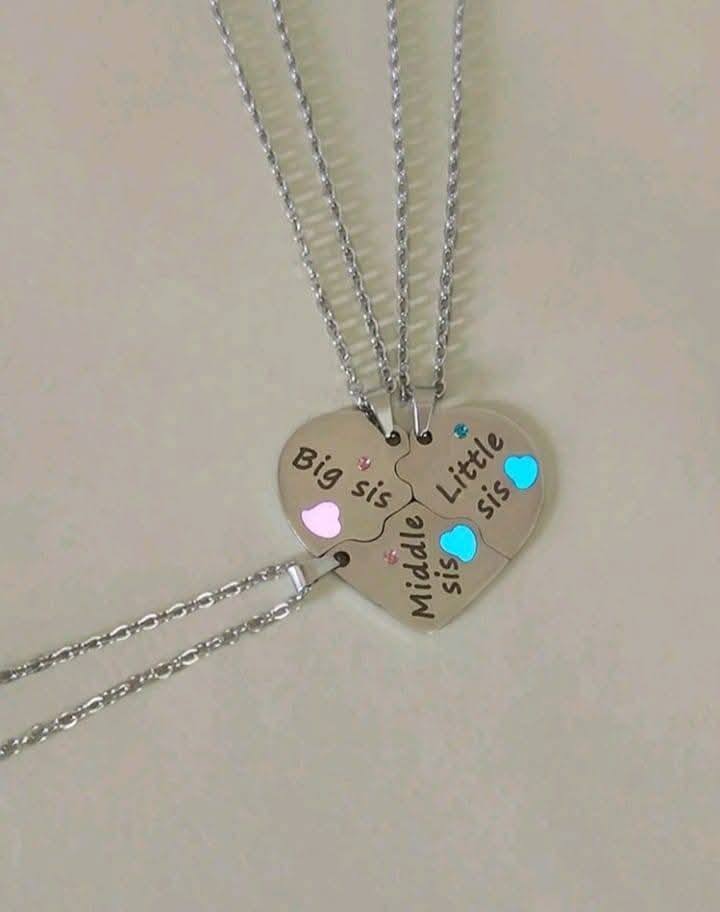 3pcs Glow-in-the-Dark Heart Sister Splicing Pendant Necklace Set