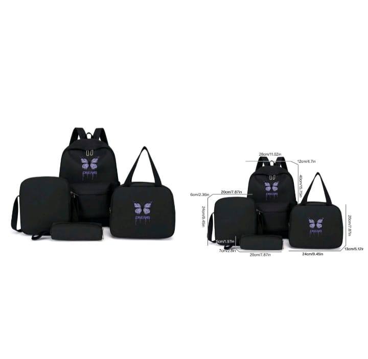 4 Pcs Back To School Simple Casual Cute School Bag Set Backpack&Handbag&Crossbody Bag&Pencil Case Backpack Set Large Capacity With Laptop Compartment School Bag Solid Color Butterfly Pattern Print Premium