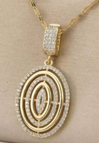 A beautiful, luxurious, jeweled, geometric circle pendant in stainless steel, for women