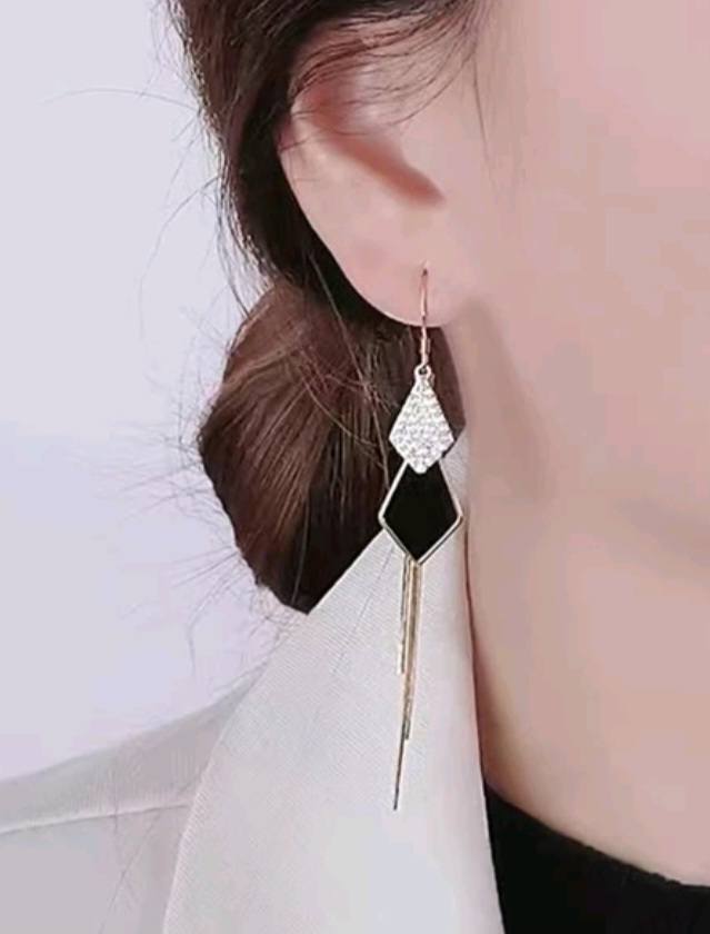 A Pair of Shiny Rectangular Rhinestone Taffeta Pendant Earrings