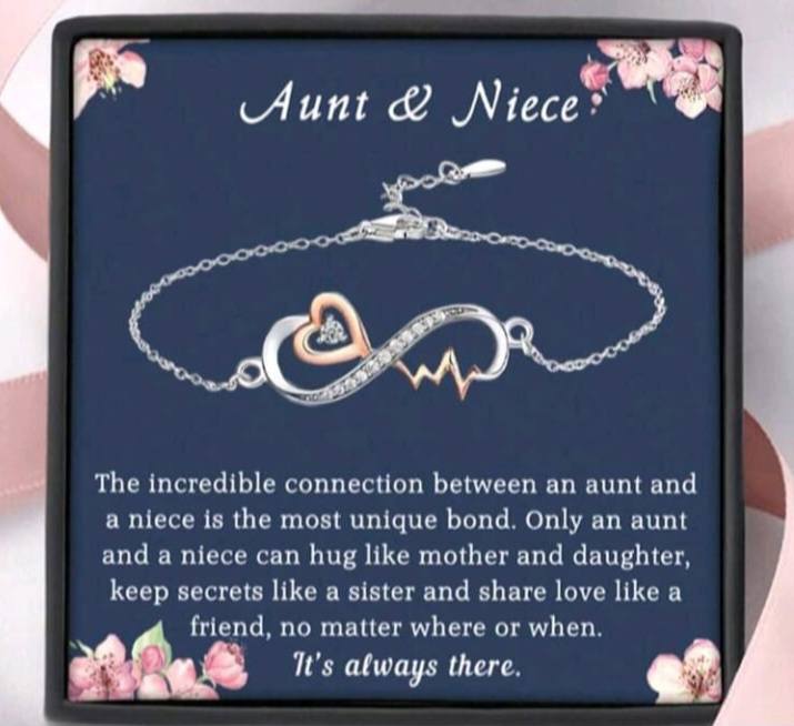 Aunt & Niece Infinity Heartbeat Bracelet with Card and Box