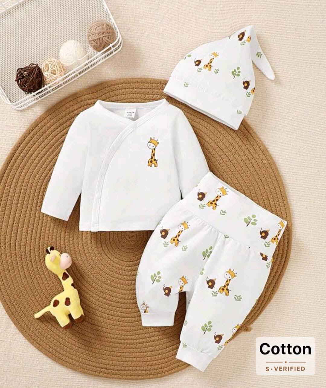 Baby Boy 3pcs Set: Adorable Hat, Long Sleeve Top And Fashionable Casual Pants