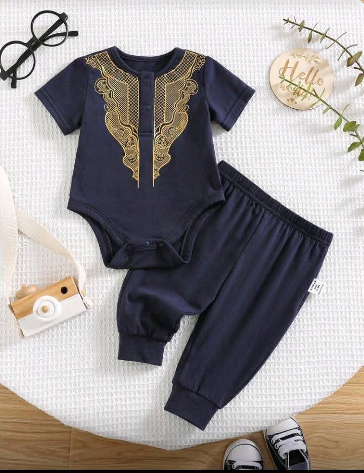 Specification: Baby Boy Traditional Bohemian Style Geometric Pattern Round Neck Long Sleeve Romper Pants (Diwali pieces)