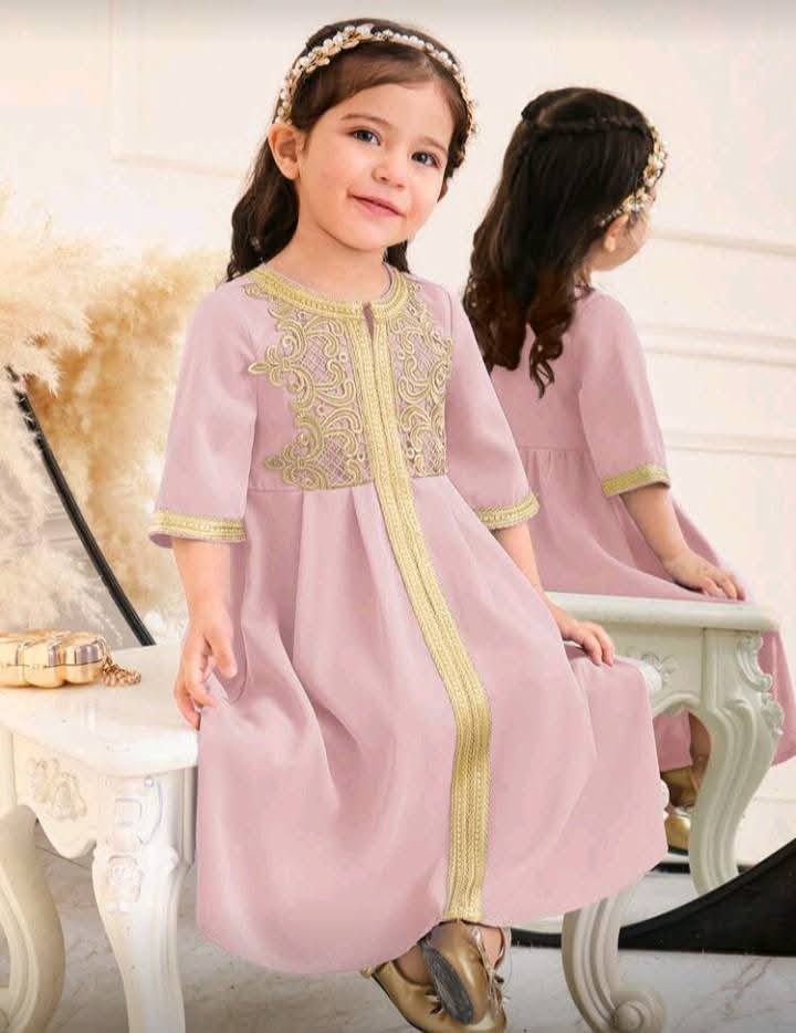 Specification: Baby Girl Plain Knit Patchwork Gold Ribbon Long Dress (Diwali pieces)