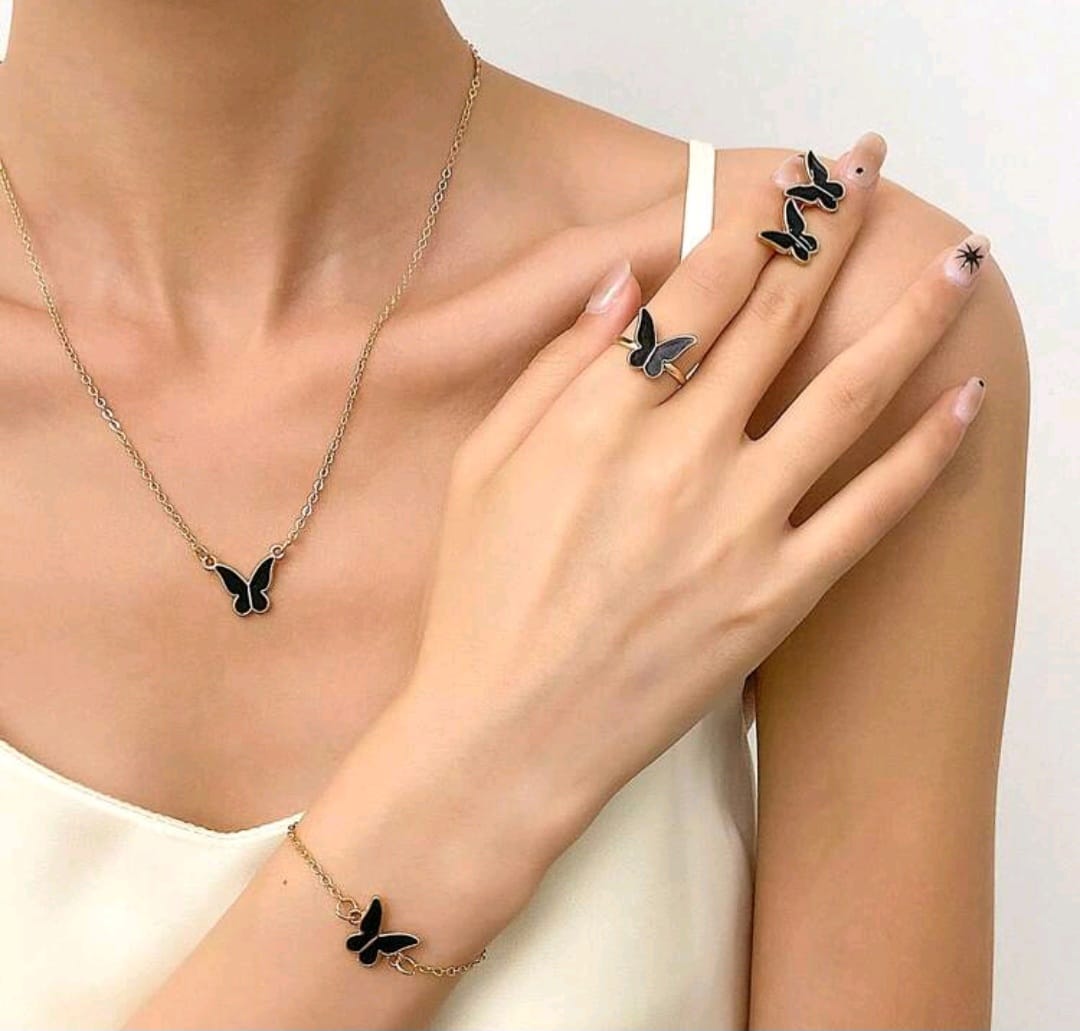Butterfly Pendant Necklace Set, Butterfly Choker, Butterfly Necklace Chain Jewellery, Butterfly Necklace Stud Earrings Bracelet Rings