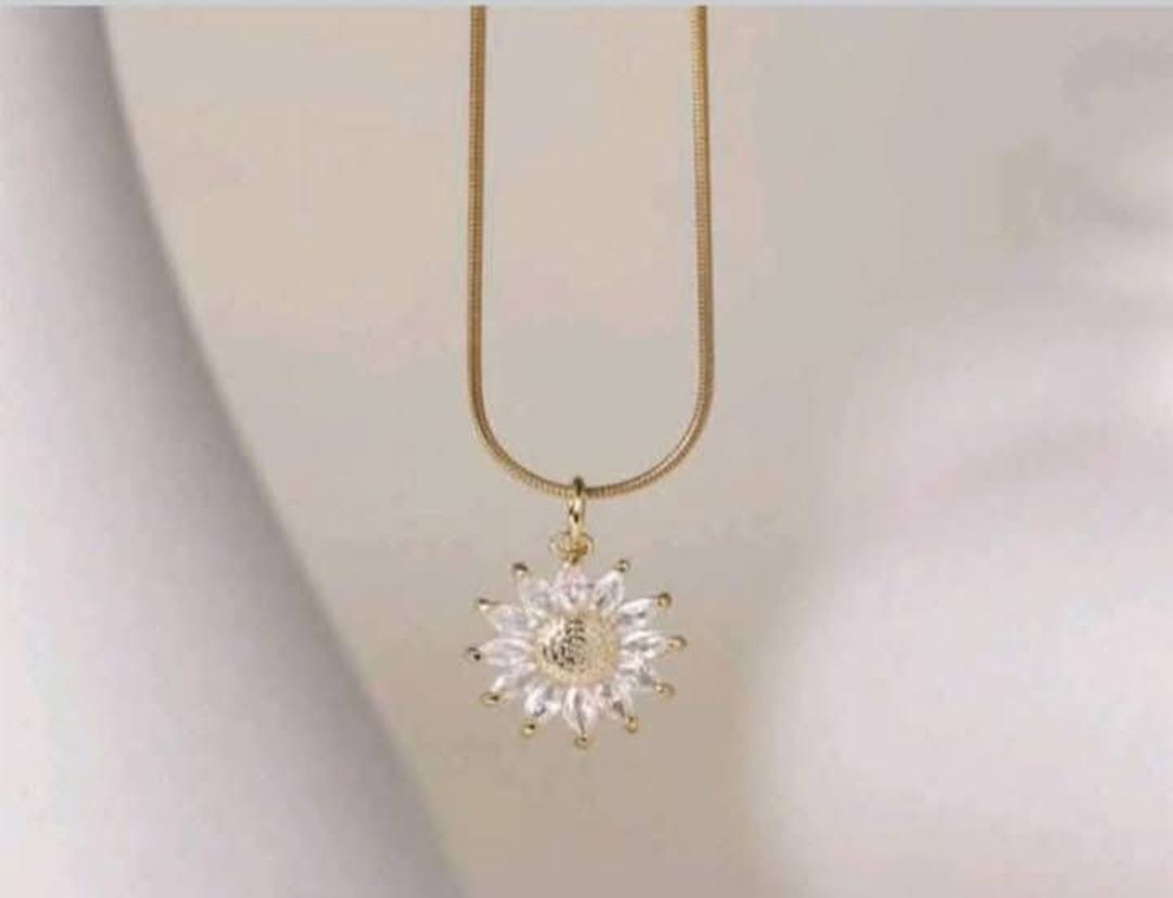 Classic Elegant Sunflower Pendant Gold Plated With Square Cubic Zirconia Jewelry Titanium Steel Gold Plated Snake Chain Women