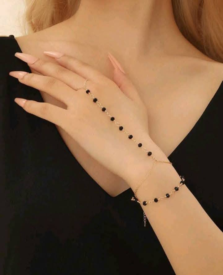 Crystal Link Chain Bracelet Women Connected Finger Ring Bracelets Vintage Jewelry (Diwali pieces)