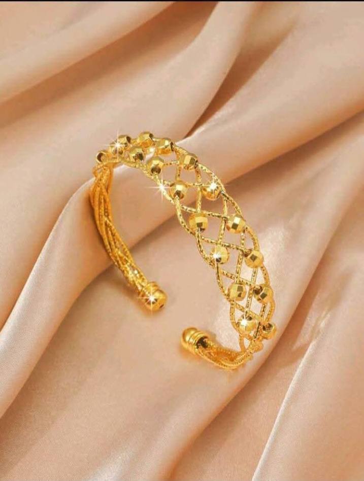 Dubai Gold Color Multi Beads Wide Cuff Bangle Bracelets for Women