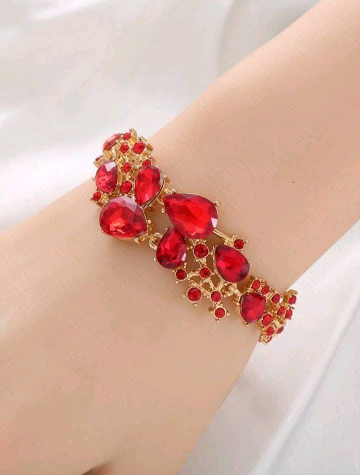 Elegant Gold-Plated Alloy Bracelet with Natural Crystal Accents