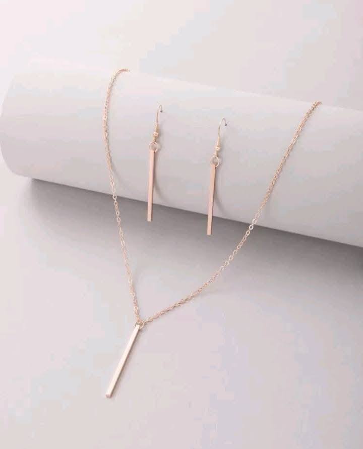 Elegant Gold Stick Jewelry Sets for Women Pendant Necklace Drop Earring Simlpe Adjustable Geometry Wedding Jewelry