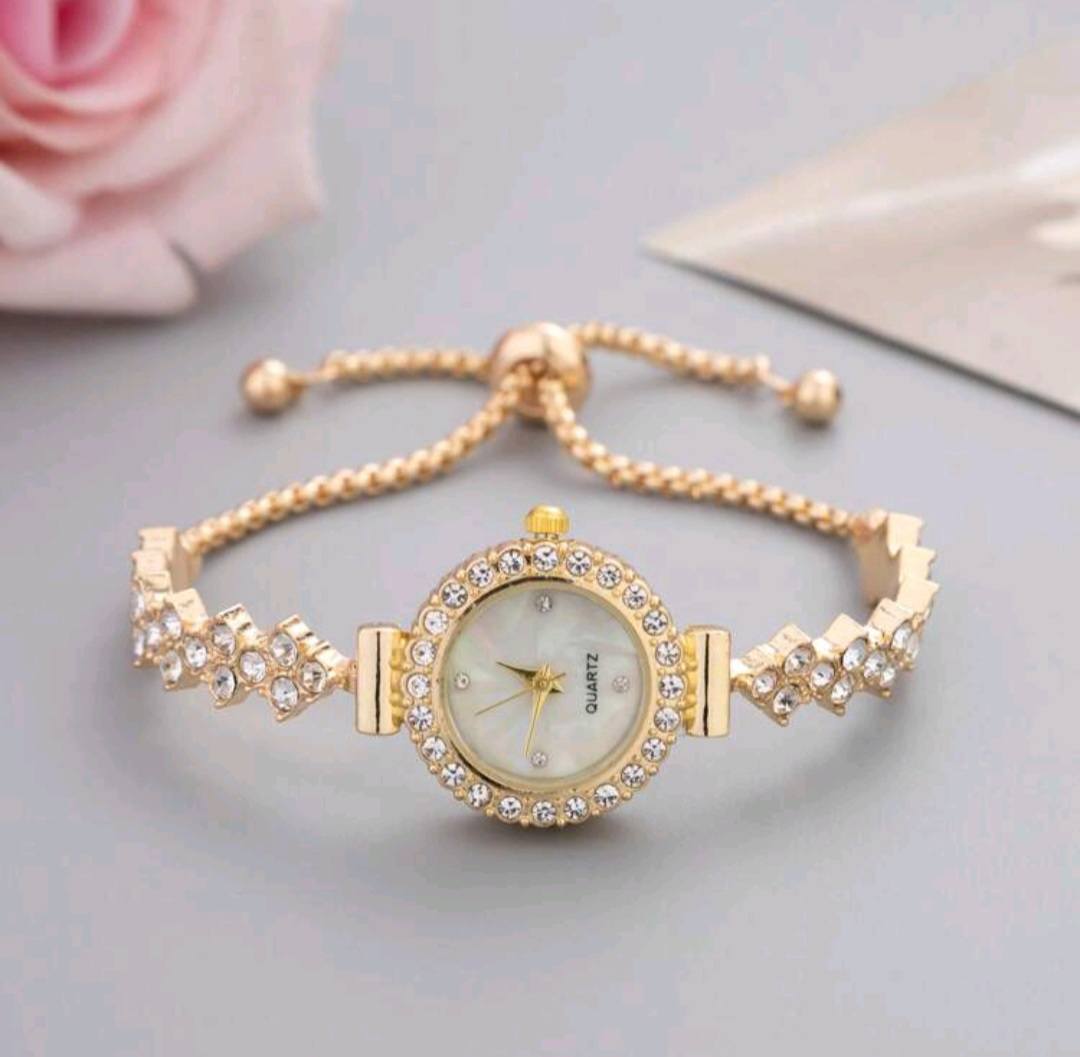 Elegant Women’s Quartz Watch with Rhinestone Bracelet, Adjustable Analog Display