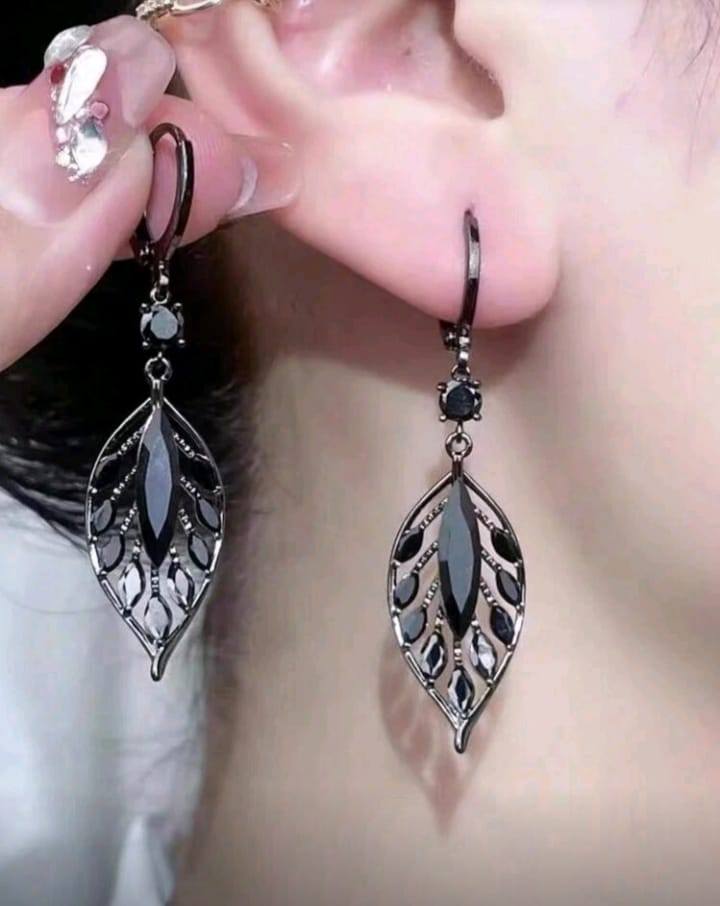 Exquisite Black Leaf Design Hollow Dangle Earrings Bohemian Simple Style Alloy Jewelry