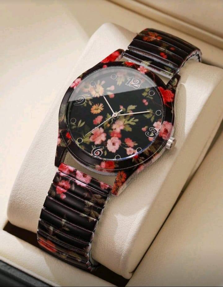 Fashion Elastic Strap Women Watches Flowers Printed Analog Quartz Wristwatches