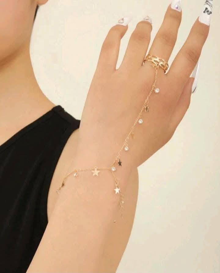 Fashionable Star & Rhinestone Decor Chain Ring Hand Bracelet (Diwali pieces)