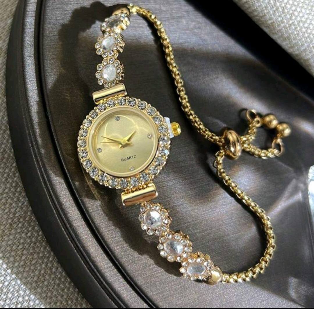 Elegant Women’s Quartz Watch with Rhinestone Bracelet, Adjustable Analog Display
