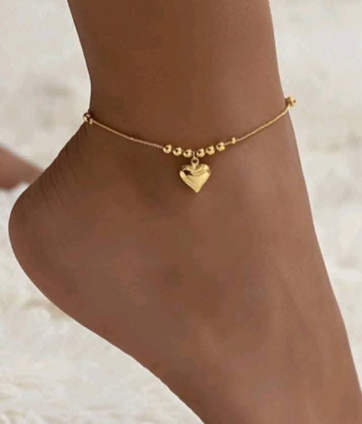 Gold-plated stainless steel anklet with a heart pendant (Diwali pieces)