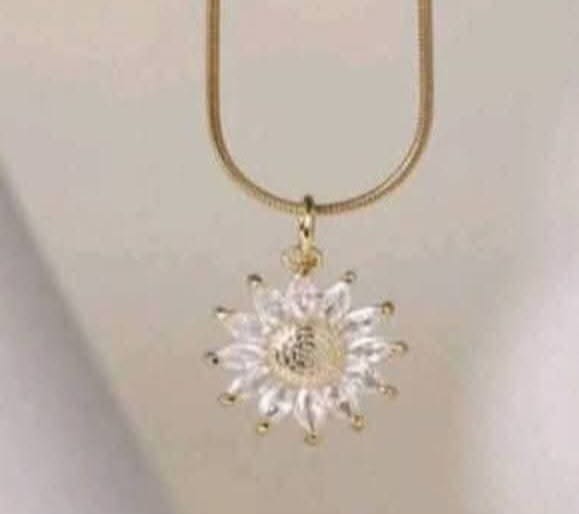 Gold Sunflower Necklace for women features a cubic zirconia encrusted floral pendant