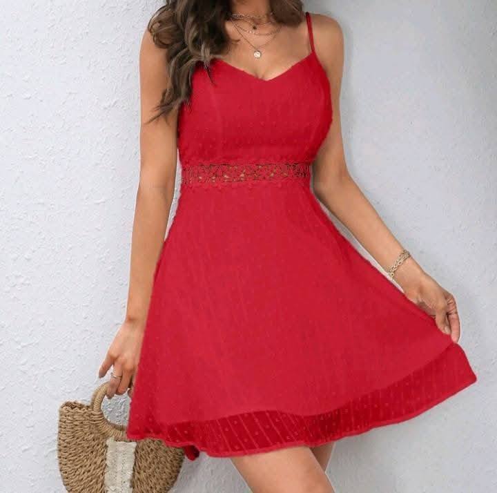 Guipure Lace Insert Cami Dress Red