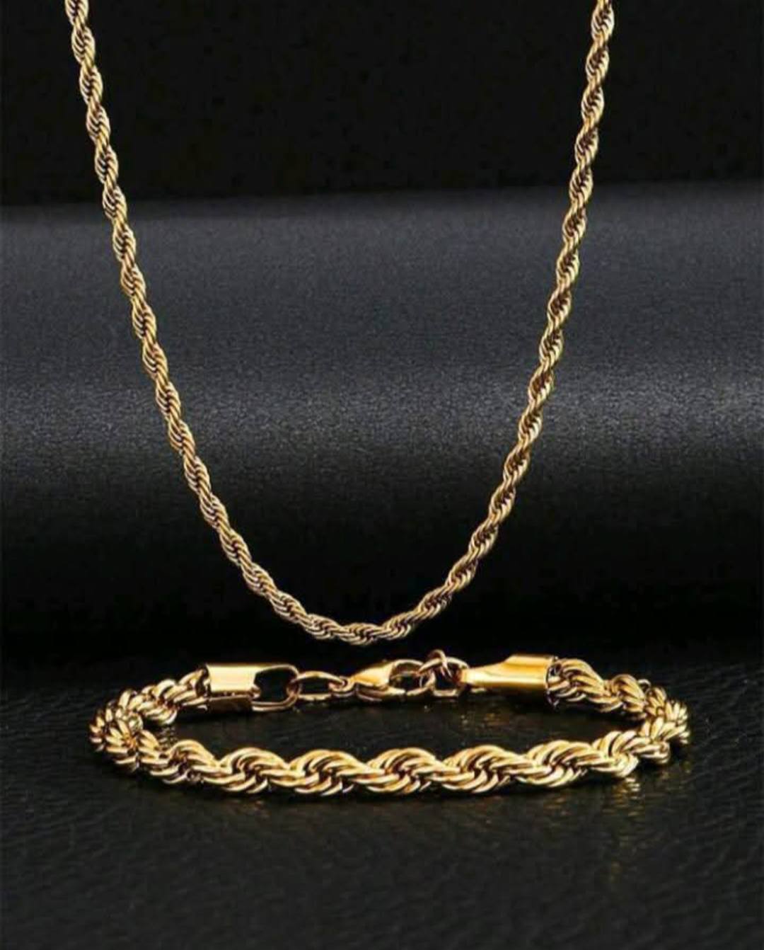 Necklace and bracelet set made of elegant twisted rope in a simple