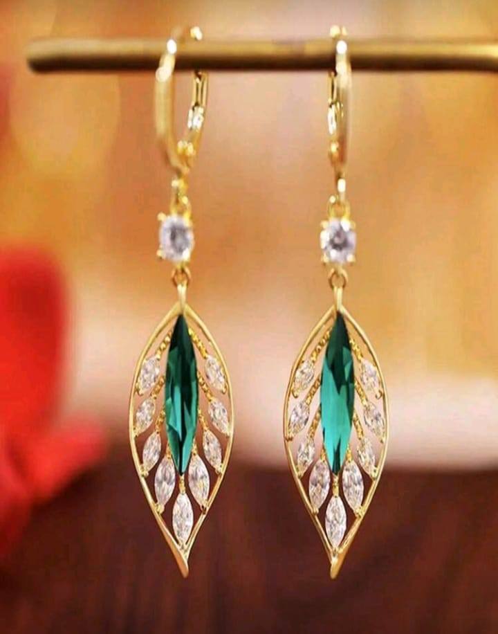 New Green Zircon Leaf Pendant Gold Color Earrings for Women