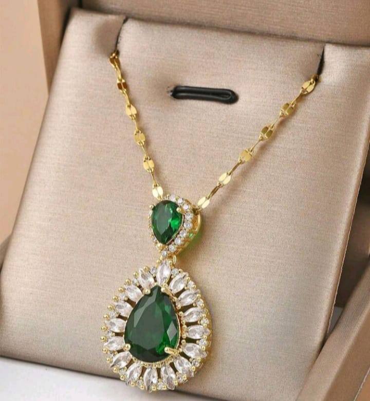 Pear Lab Created Green Emerald Halo Pendant 14K Yellow Gold Silver Plated