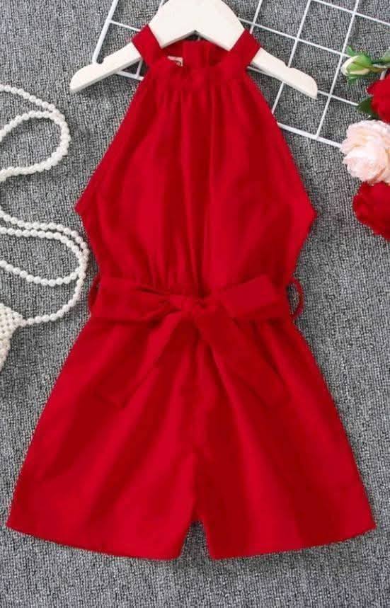 Girl’s Printed Summer Romper Spaghetti Strap Bow Belted Rompers