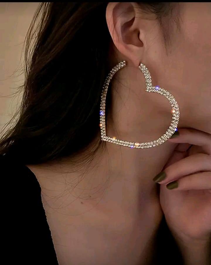 Rhinestones Hoop Earrings Big Heart Crystal Hoop Earrings