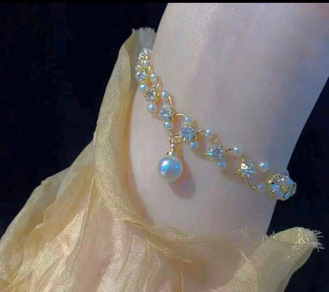 Simple Vintage Ring Buckle Pearl Diamond Bracelet for Women