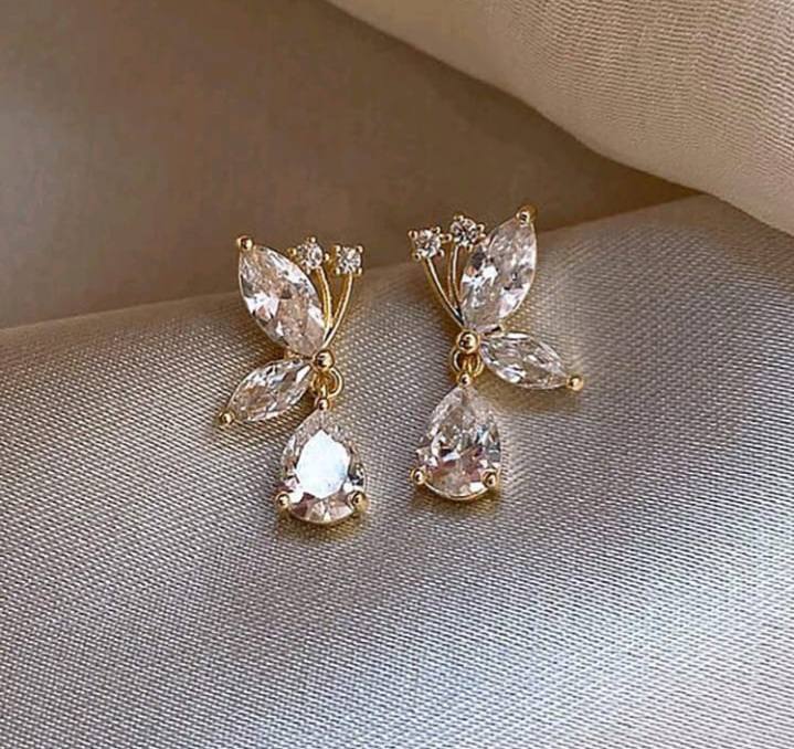 Sparkling CZ Inlaid Butterfly Waterdrop Dangle Earrings