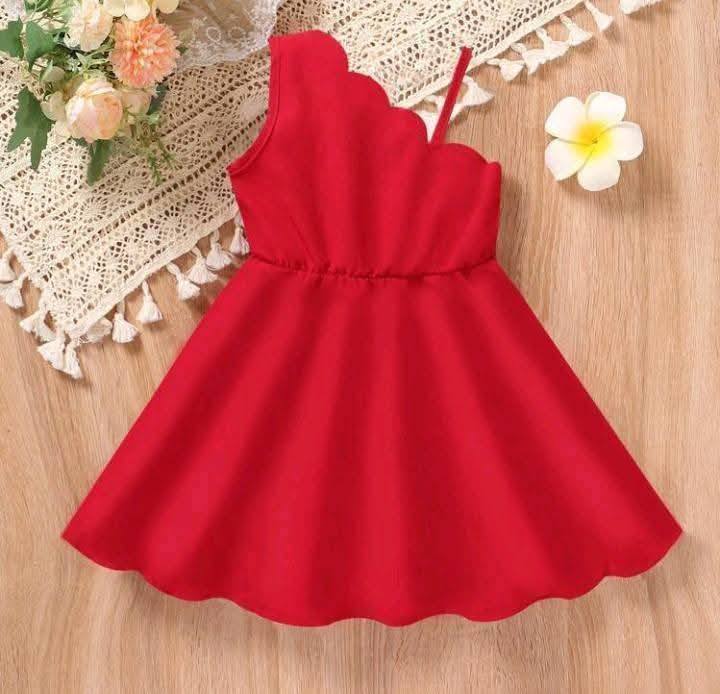 Specification: Summer Holiday Solid Color Fitted Waist Asymmetrical Neckline Sleeveless Dress for Young Girls Plain