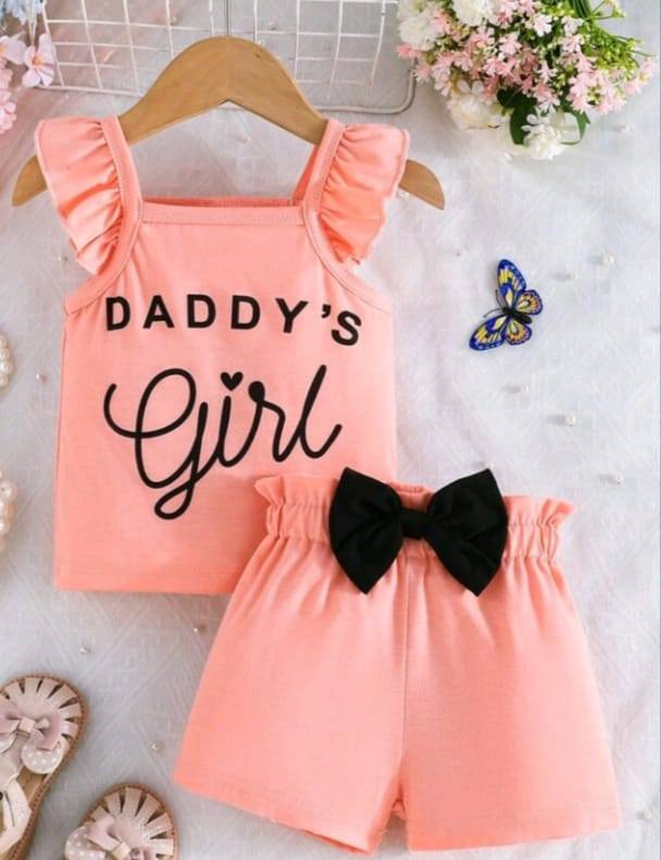 Specification: Toddler Girls Slogan Graphic Ruffle Sleeve Top & Bowtie Shorts