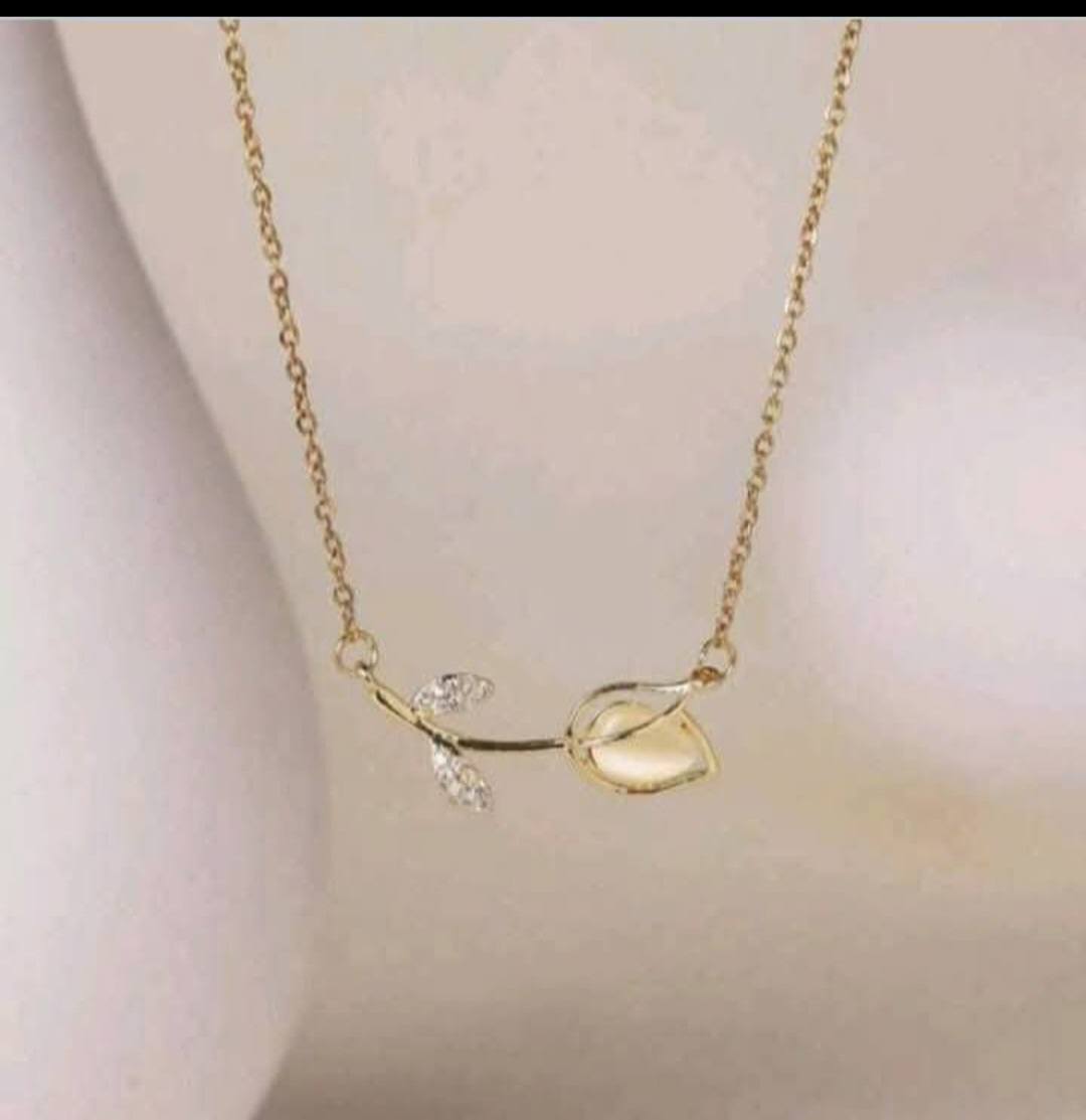Tulip Necklace, Gold Plated Women’s O Chain Necklace With Cubic Zirconia And Faux Pearl Pendant