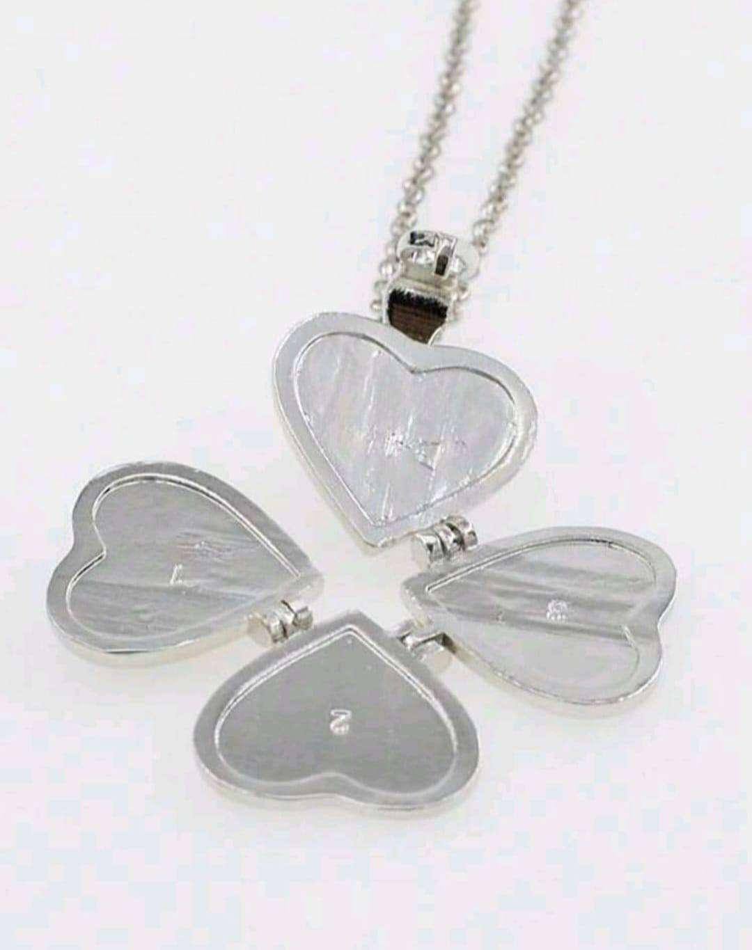 Vintage Four-dimensional Heart Shaped Four-leaf Clover Multi-layer Photo Box Frame Pendant Necklace