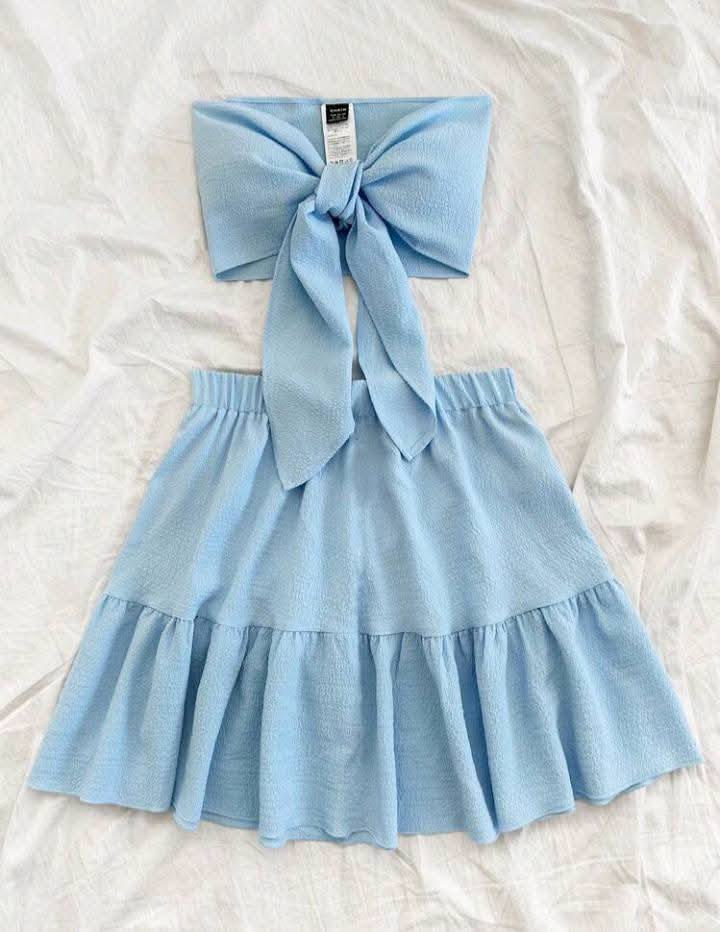 Specification: Women 2 Pieces Set: Solid Color Bandeau Top With Drawstring Closure And Minimalist A-Line Skirt, Casual Outfit