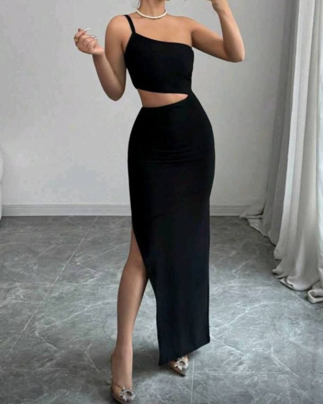 Specification: Women’s Dress One Shoulder Drawstring Side Split Thigh Dress