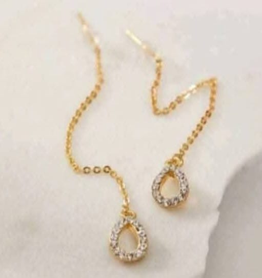 Womens Trendy Hollow Rhinestone Water Drop Tassel Threader Earrings