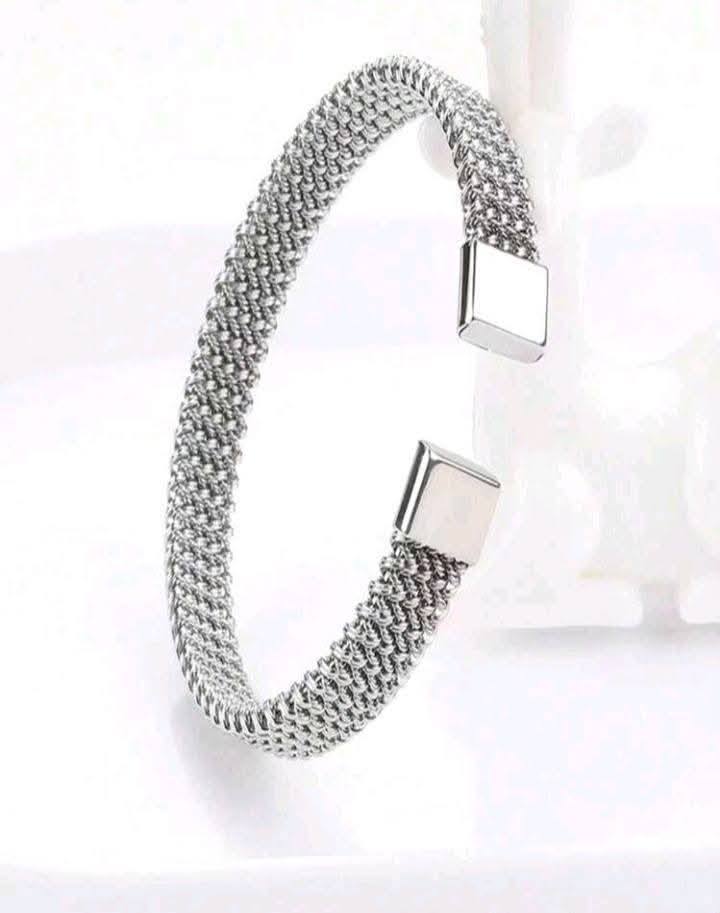 Specification: Woven Mesh Stainless Steel Open Bangle for Men